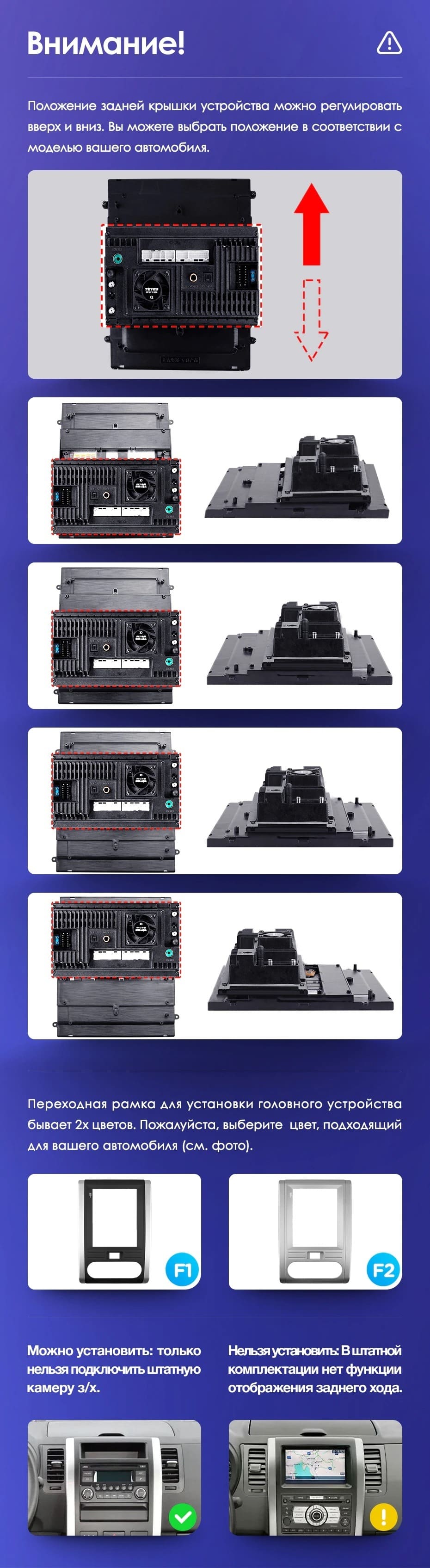 Вертикальная установка магнитолы закрывается специальной рамкой под определённый автомобиль. Утончённый, лаконичный дизайн Teyes TPRO 2 подойдёт под любую премиальную обшивку салона. Большой выбор цветовых решений интерфейса позволяет создавать индивидуальное оформление, чтобы мерцания и анимации на мониторе не отвлекали от езды. Teyes TPRO 2 - это симбиоз передовых технологий, созданный для вашего комфорта и безопасности.