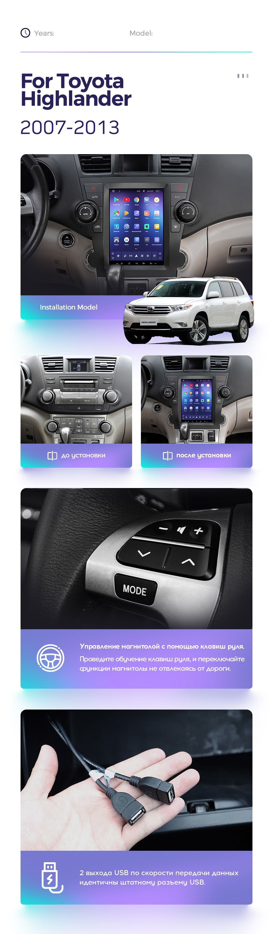 Штатная магнитола Tesla style Teyes TPRO 2 4/64 Toyota Highlander 2 XU40 (2007-2013) - купить всего за 39 000 руб. в интернет-магазине в Екатеринбурге Teyes.com.ru. ✓ Самый лучший выбор мультимедиа ✓ Лучшая замена штатному ГУ ✓ Тел. +7 (800) 775-31-74