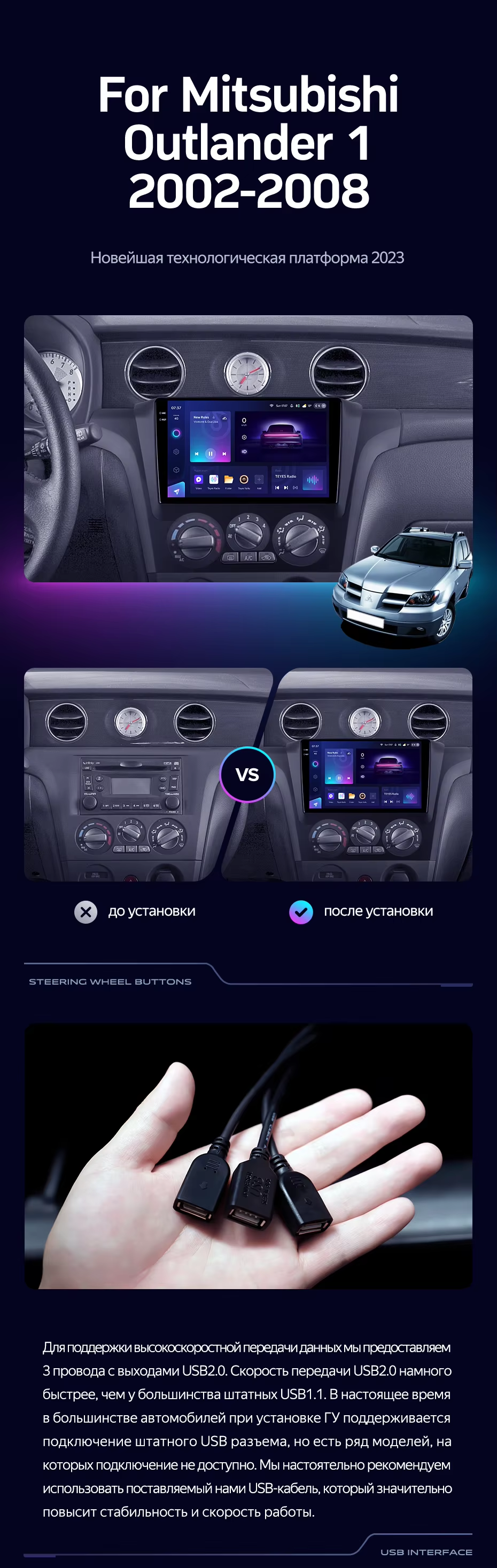 Штатная магнитола Teyes CC3 2K 4/32 Mitsubishi Outlander 1 (2002-2008) F1 - купить всего за 39 470 руб. в интернет-магазине в Екатеринбурге Teyes.com.ru. ✓ Самый лучший выбор мультимедиа ✓ Лучшая замена штатному ГУ ✓ Тел. +7 (800) 775-31-74