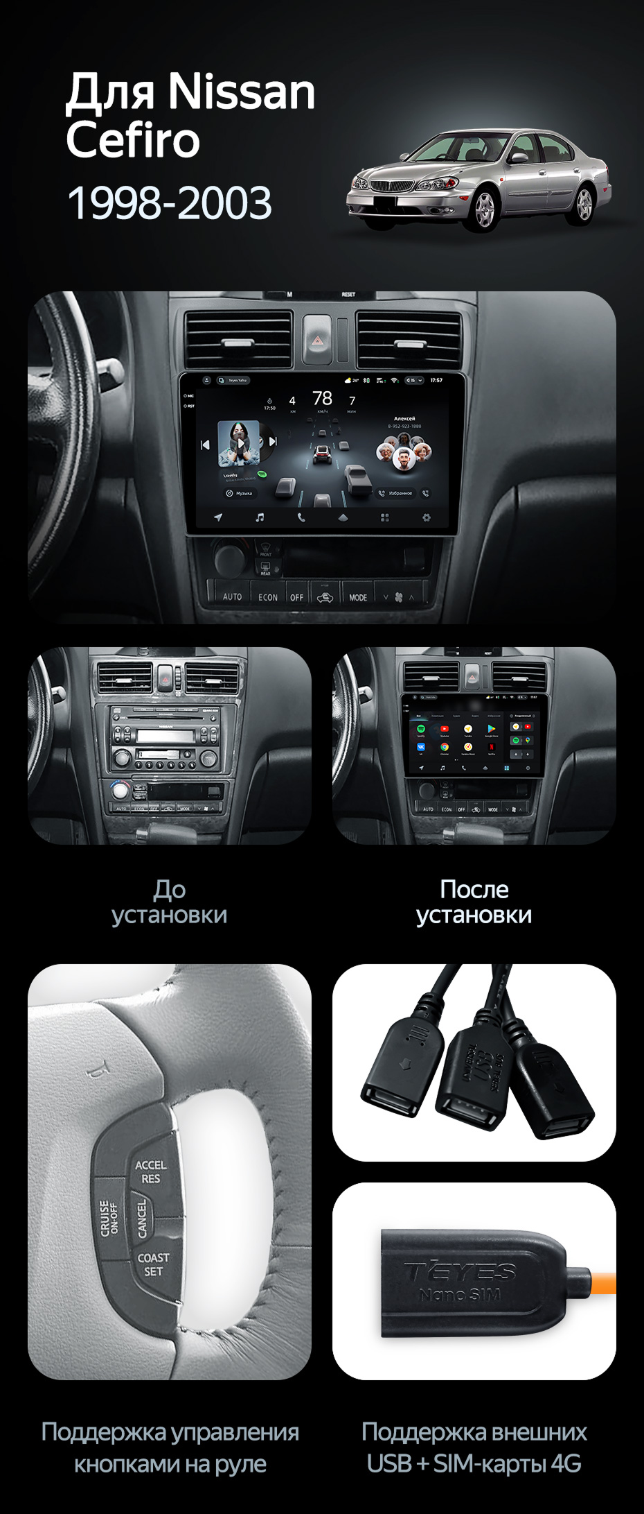 Штатная магнитола Teyes CC3 2K 4/64 Nissan Cefiro 3 A33 (1998-2003) F2 - купить всего за 47 800 руб. в интернет-магазине в Екатеринбурге Teyes.com.ru. ✓ Самый лучший выбор мультимедиа ✓ Лучшая замена штатному ГУ ✓ Тел. +7 (800) 775-31-74
