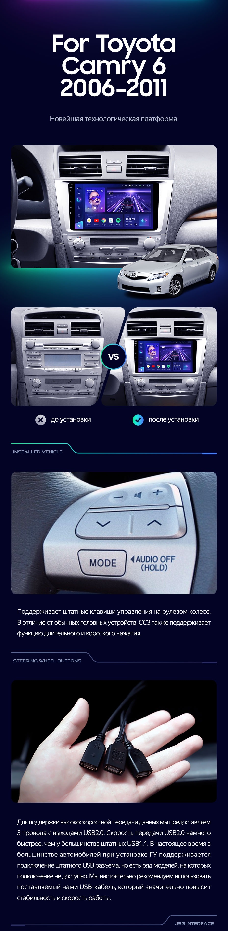 Штатная магнитола Teyes CC3 4/64 Toyota Camry 6 XV 40 (2006-2011) F1 - купить всего за 40 700 руб. в интернет-магазине в Екатеринбурге Teyes.com.ru. ✓ Самый лучший выбор мультимедиа ✓ Лучшая замена штатному ГУ ✓ Тел. +7 (800) 775-31-74