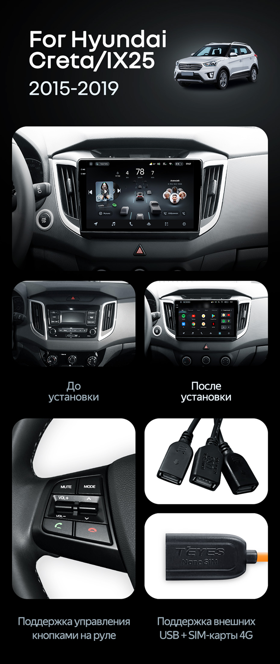 Штатная магнитола Teyes CC3L 4/32 Hyundai Creta 1 (2015-2019) с кнопками - купить всего за 24 700 руб. в интернет-магазине в Екатеринбурге Teyes.com.ru. ✓ Самый лучший выбор мультимедиа ✓ Лучшая замена штатному ГУ ✓ Тел. +7 (800) 775-31-74