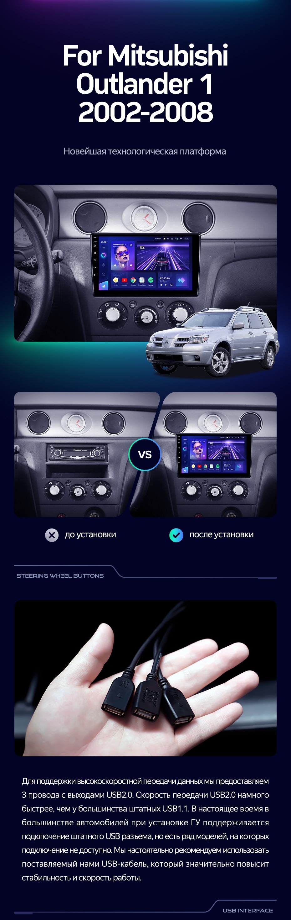 Штатная магнитола Teyes CC3L 4/32 Mitsubishi Outlander 1 (2002-2008) F2 - купить всего за 23 200 руб. в интернет-магазине в Екатеринбурге Teyes.com.ru. ✓ Самый лучший выбор мультимедиа ✓ Лучшая замена штатному ГУ ✓ Тел. +7 (800) 775-31-74