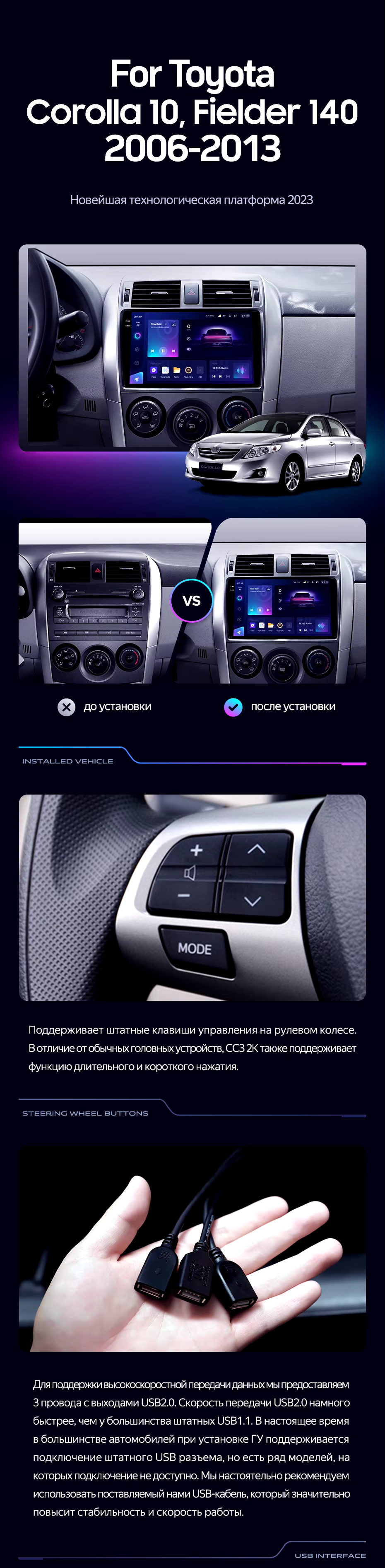 Штатная магнитола Teyes CC3L 4/64 Toyota Corolla Fielder 140 (2006-2013) Тип-B - купить всего за 28 300 руб. в интернет-магазине в Екатеринбурге Teyes.com.ru. ✓ Самый лучший выбор мультимедиа ✓ Лучшая замена штатному ГУ ✓ Тел. +7 (800) 775-31-74
