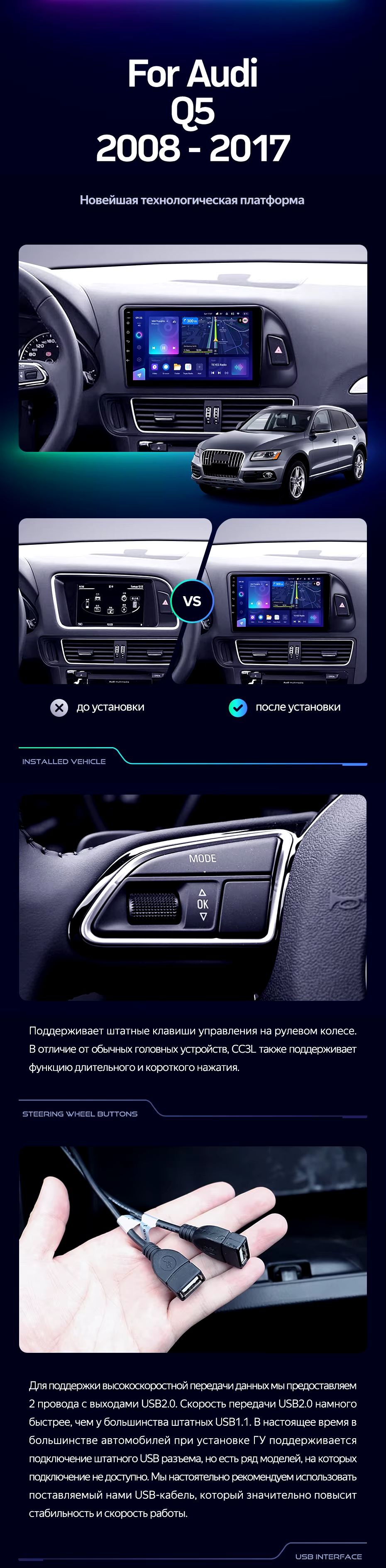 Штатная магнитола Teyes CC3L WiFi 2/32 Audi Q5 8R (2008-2017) Тип-A - купить всего за 19 740 руб. в интернет-магазине в Екатеринбурге Teyes.com.ru. ✓ Самый лучший выбор мультимедиа ✓ Лучшая замена штатному ГУ ✓ Тел. +7 (800) 775-31-74