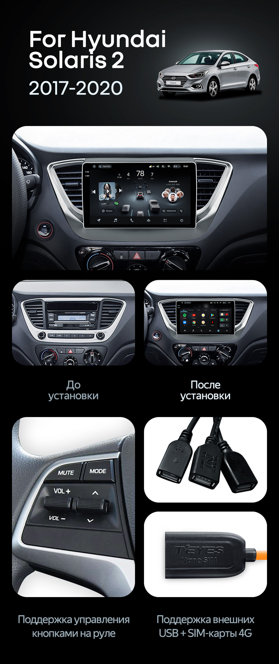 Штатная магнитола Teyes CC4 6/64 Hyundai Solaris 2 (2017-2020) F1 Тип-A - купить всего за 47 500 руб. в интернет-магазине в Екатеринбурге Teyes.com.ru. ✓ Самый лучший выбор мультимедиа ✓ Лучшая замена штатному ГУ ✓ Тел. +7 (800) 775-31-74