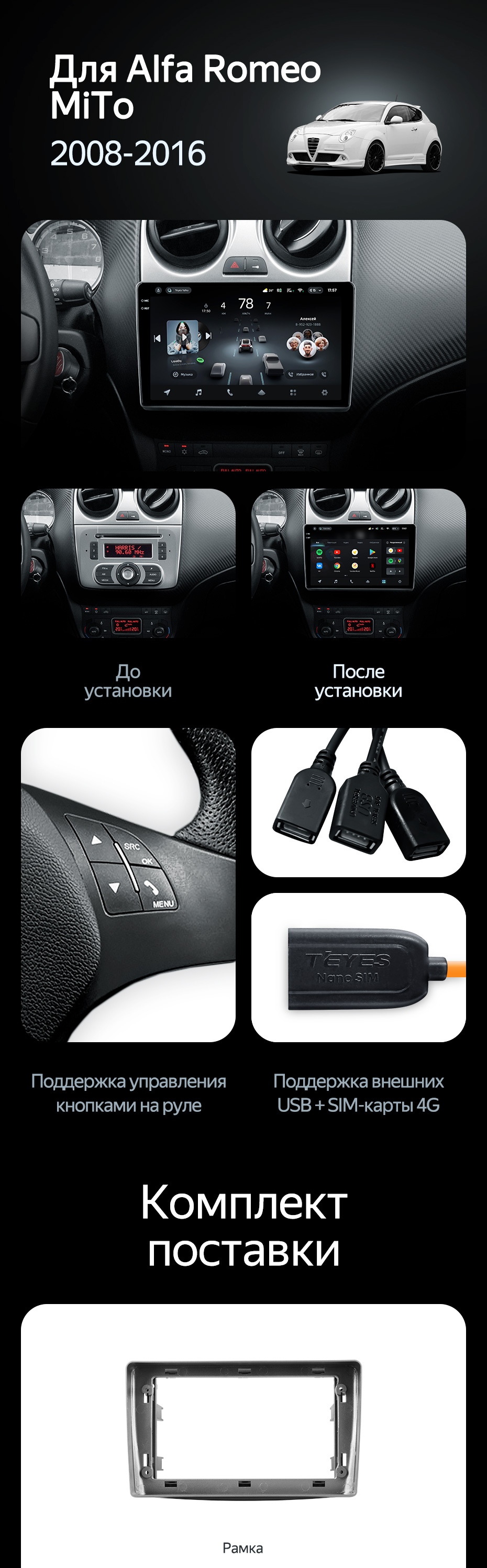 Штатная магнитола Teyes CC4 Pro 12/256 Alfa Romeo MiTo 955 (2008-2016) - купить всего за 69 080 руб. в интернет-магазине в Екатеринбурге Teyes.com.ru. ✓ Самый лучший выбор мультимедиа ✓ Лучшая замена штатному ГУ ✓ Тел. +7 (800) 775-31-74
