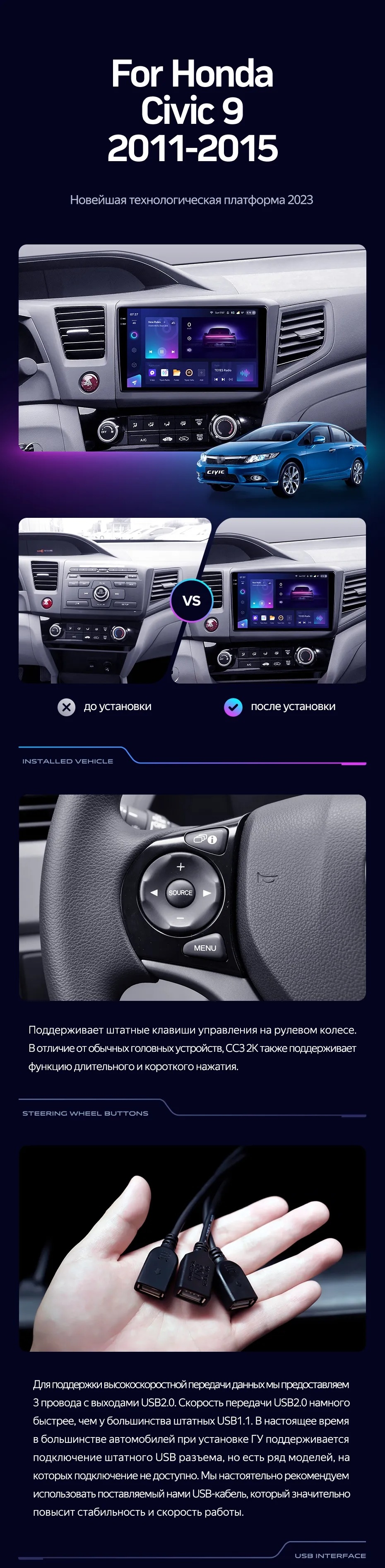 Штатная магнитола Teyes CC4 Pro 12/256 Honda Civic 9 FB FK FD (2011-2015) - купить всего за 67 080 руб. в интернет-магазине в Екатеринбурге Teyes.com.ru. ✓ Самый лучший выбор мультимедиа ✓ Лучшая замена штатному ГУ ✓ Тел. +7 (800) 775-31-74