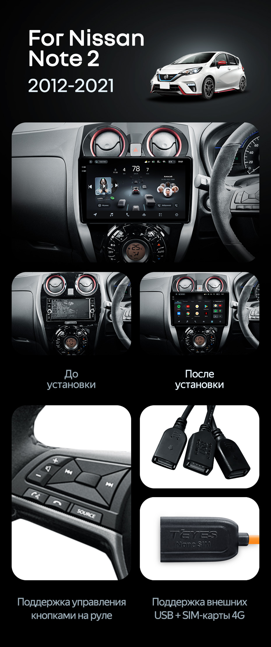Штатная магнитола Teyes CC4 Pro 12/256 Nissan Note 2 E12 (2012-2021) - купить всего за 66 300 руб. в интернет-магазине в Екатеринбурге Teyes.com.ru. ✓ Самый лучший выбор мультимедиа ✓ Лучшая замена штатному ГУ ✓ Тел. +7 (800) 775-31-74