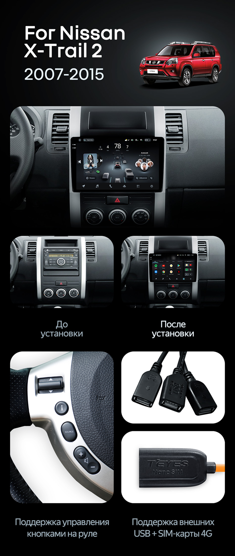 Штатная магнитола Teyes CC4 Pro 12/256 Nissan X-Trail T31 (2007-2015) - купить всего за 66 030 руб. в интернет-магазине в Екатеринбурге Teyes.com.ru. ✓ Самый лучший выбор мультимедиа ✓ Лучшая замена штатному ГУ ✓ Тел. +7 (800) 775-31-74