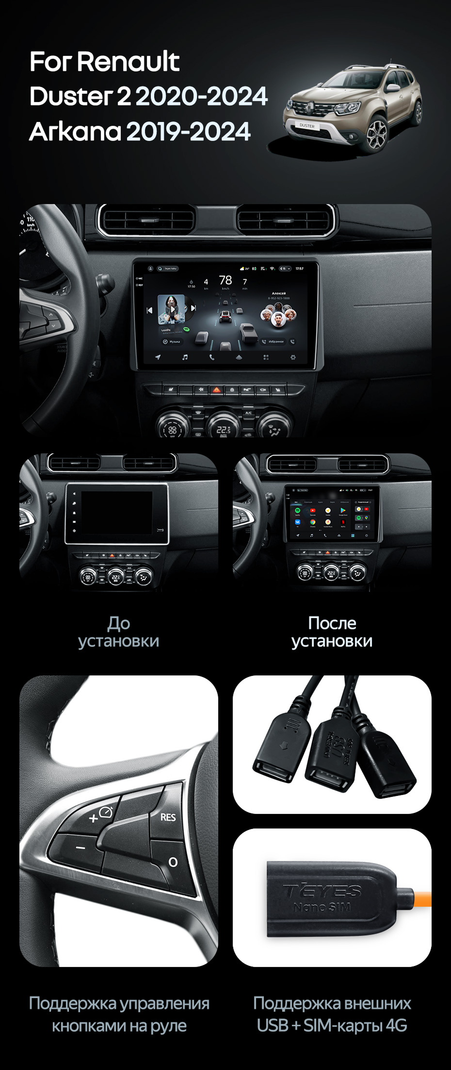 Штатная магнитола Teyes CC4 Pro 12/256 Renault Duster HM 2 (2020-2023) F1 - купить всего за 68 410 руб. в интернет-магазине в Екатеринбурге Teyes.com.ru. ✓ Самый лучший выбор мультимедиа ✓ Лучшая замена штатному ГУ ✓ Тел. +7 (800) 775-31-74