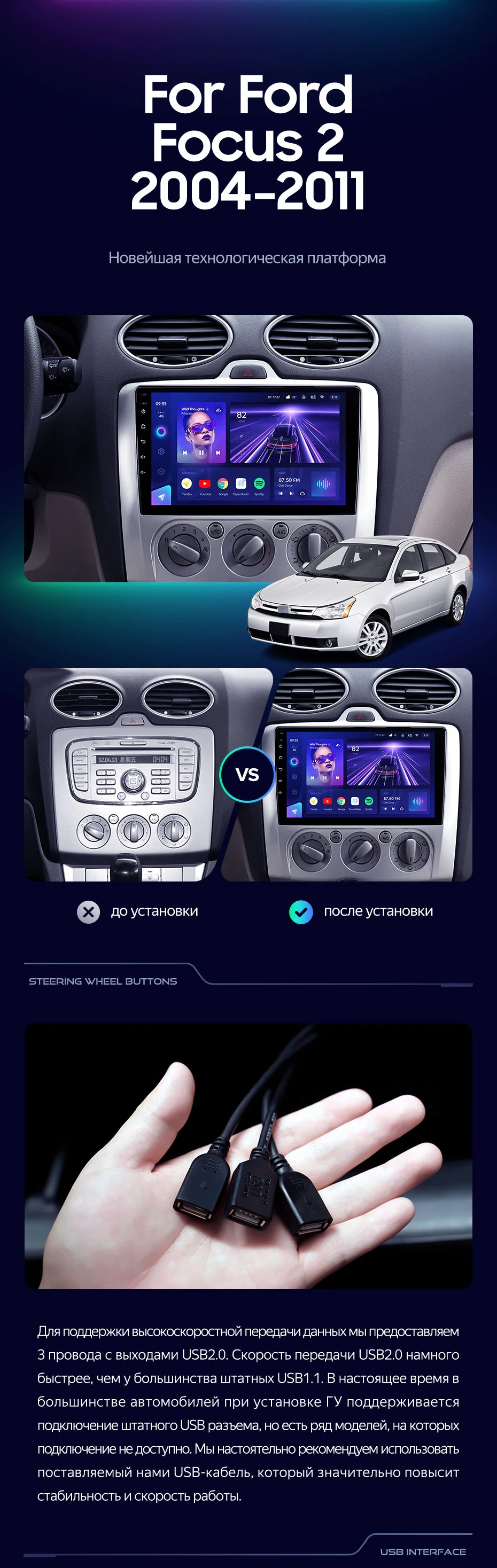 Штатная магнитола Teyes CC4 Pro 8/128 Ford Focus 2 Mk 2 (2004-2011) F2 - купить всего за 58 480 руб. в интернет-магазине в Екатеринбурге Teyes.com.ru. ✓ Самый лучший выбор мультимедиа ✓ Лучшая замена штатному ГУ ✓ Тел. +7 (800) 775-31-74
