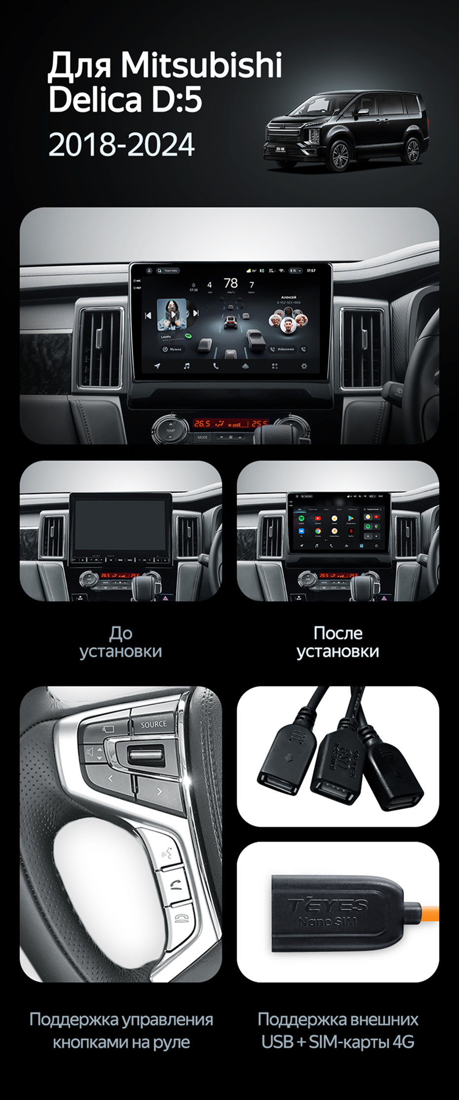 Штатная магнитола Teyes CC4 Pro 8/128 Mitsubishi Delica D:5 (2018-2024) - купить всего за 57 100 руб. в интернет-магазине в Екатеринбурге Teyes.com.ru. ✓ Самый лучший выбор мультимедиа ✓ Лучшая замена штатному ГУ ✓ Тел. +7 (800) 775-31-74
