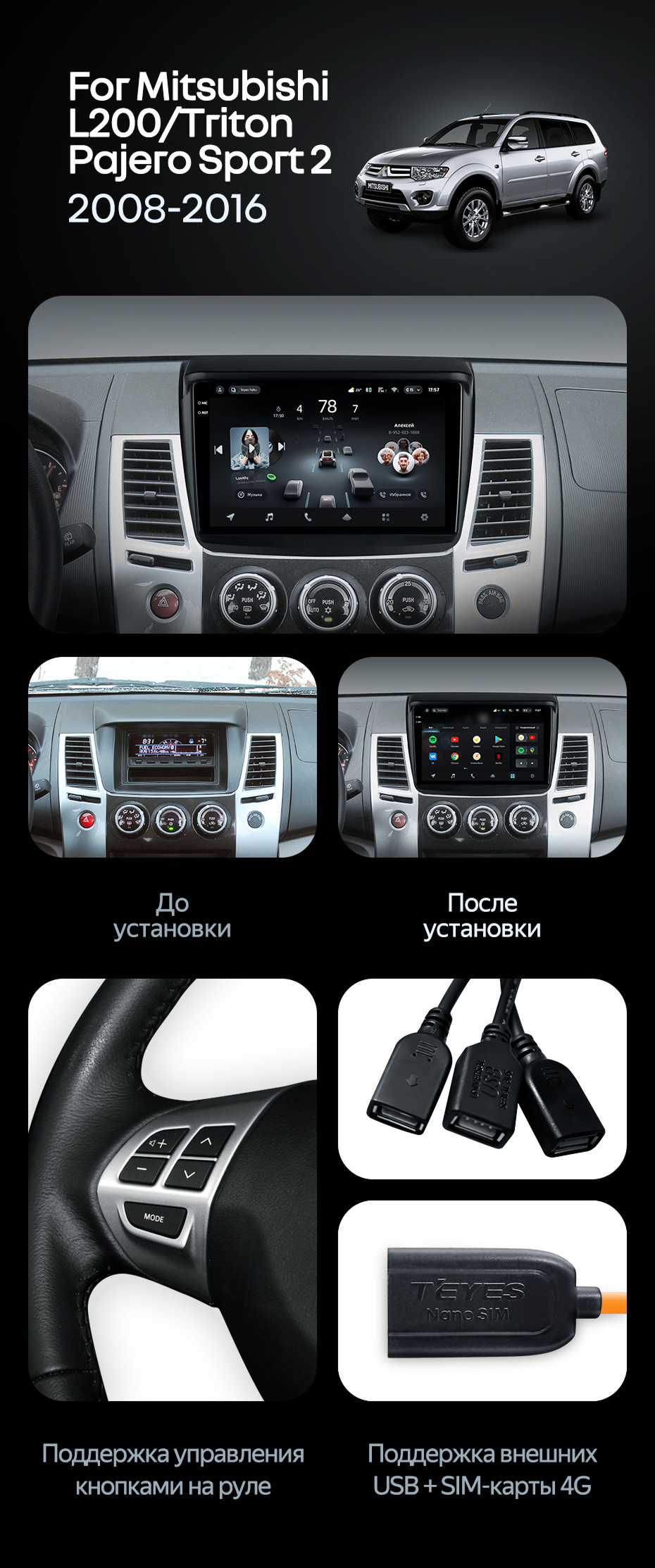 Штатная магнитола Teyes CC4 Pro 8/128 Mitsubishi L200 (2008-2016) - купить всего за 58 690 руб. в интернет-магазине в Екатеринбурге Teyes.com.ru. ✓ Самый лучший выбор мультимедиа ✓ Лучшая замена штатному ГУ ✓ Тел. +7 (800) 775-31-74