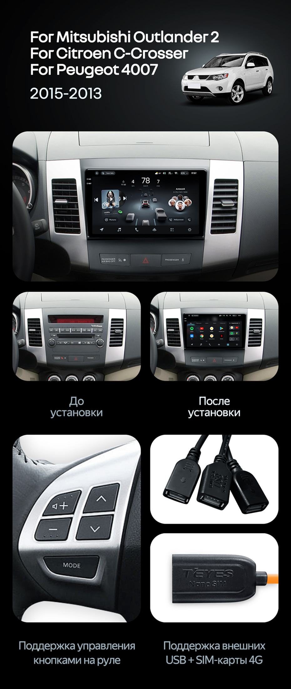 Штатная магнитола Teyes CC4 Pro 8/128 Mitsubishi Outlander 2 (2005-2011) Тип-A - купить всего за 58 350 руб. в интернет-магазине в Екатеринбурге Teyes.com.ru. ✓ Самый лучший выбор мультимедиа ✓ Лучшая замена штатному ГУ ✓ Тел. +7 (800) 775-31-74