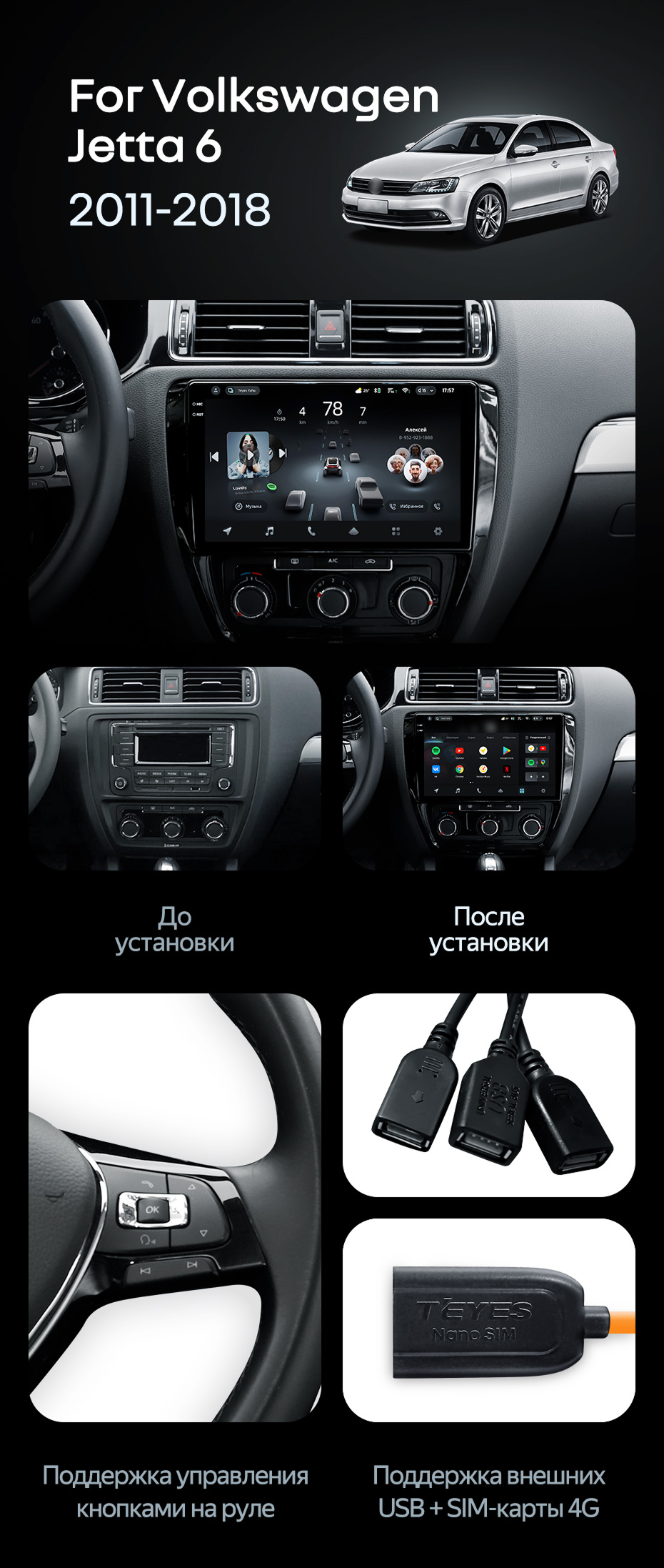 Штатная магнитола Teyes CC4 Pro 8/128 Volkswagen Jetta 6 (2011-2018) - купить всего за 56 330 руб. в интернет-магазине в Екатеринбурге Teyes.com.ru. ✓ Самый лучший выбор мультимедиа ✓ Лучшая замена штатному ГУ ✓ Тел. +7 (800) 775-31-74