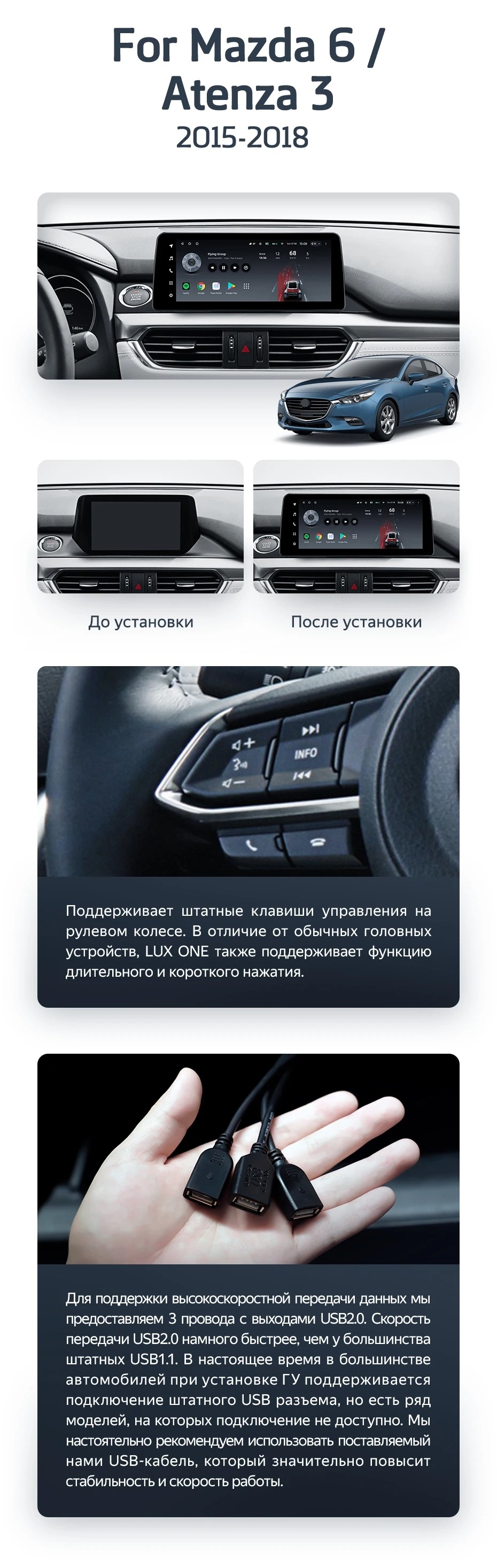 Штатная магнитола Teyes LUX ONE 4/64 Mazda 6 GJ GL (2015-2018) Тип-A - купить всего за 38 600 руб. в интернет-магазине в Екатеринбурге Teyes.com.ru. ✓ Самый лучший выбор мультимедиа ✓ Лучшая замена штатному ГУ ✓ Тел. +7 (800) 775-31-74