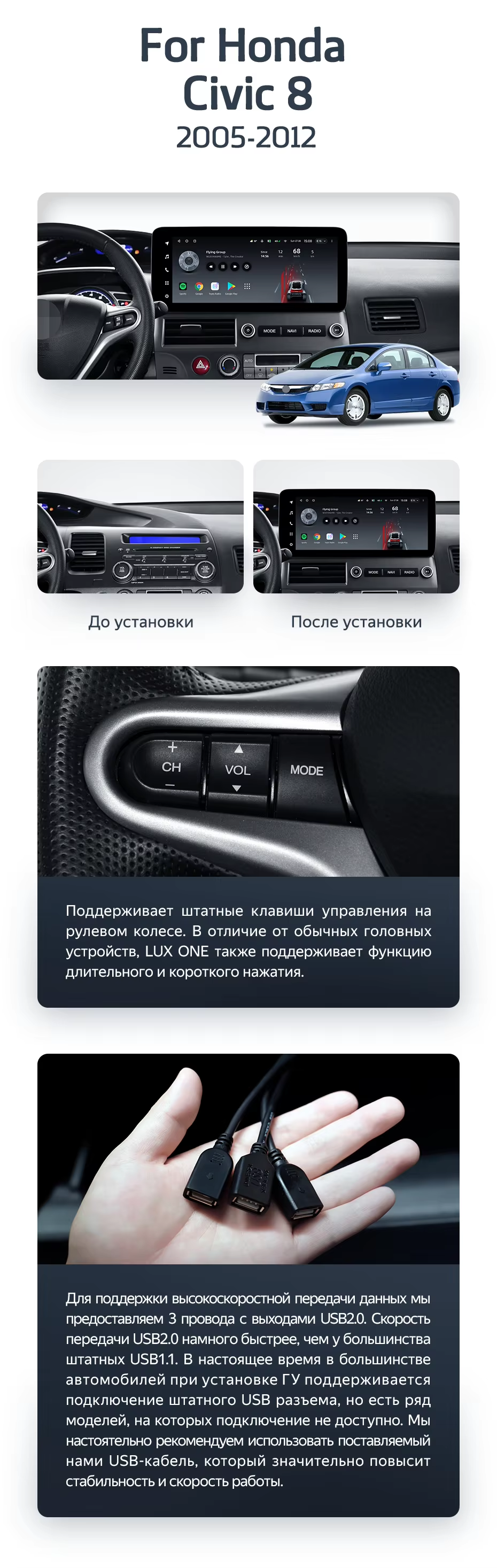 Штатная магнитола Teyes LUX ONE 6/128 Honda Civic 8 FK FN FD (2005-2012) - купить всего за 48 160 руб. в интернет-магазине в Екатеринбурге Teyes.com.ru. ✓ Самый лучший выбор мультимедиа ✓ Лучшая замена штатному ГУ ✓ Тел. +7 (800) 775-31-74