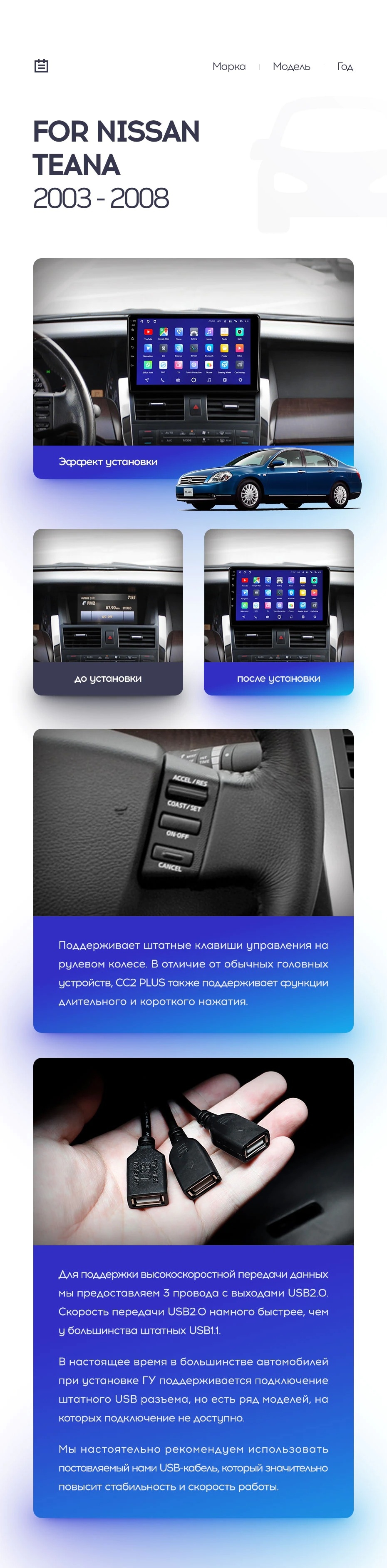 Полный комплект установки магнитолы Teyes с рамкой и проводкой можно выбрать в каталоге штатных магнитол Nissan Teana J31 (2003-2008).